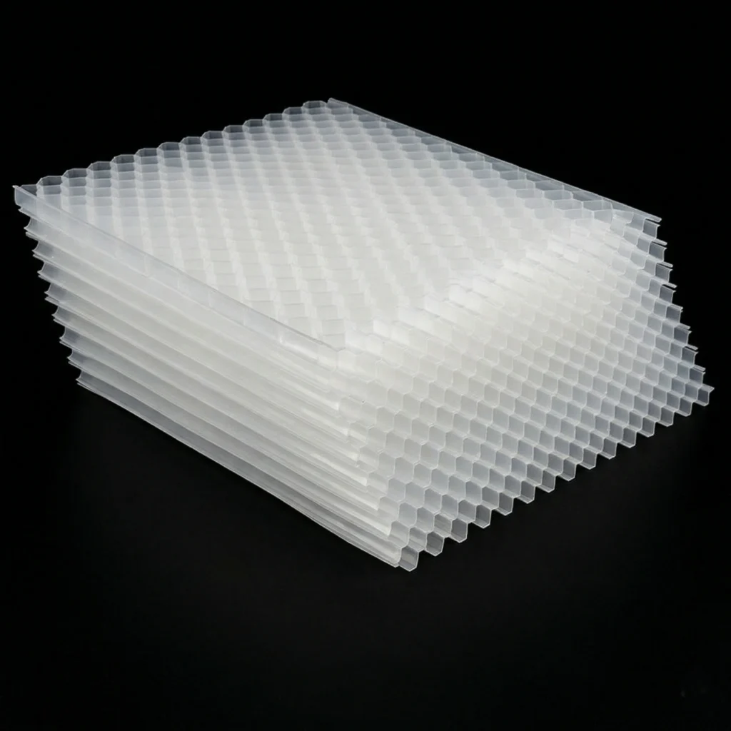 60° inclined PP/PVC honeycomb channels utilizing shallow depth sedimentation. Accelerates solid-liquid separation and reduces effluent SS, effectively multiplying clarifier capacity.